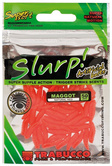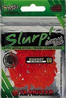 Przynęty Slurp wykonane są z wysokiej jakości materiału – miękkiego a jednocześnie wytrzymałego. Te doskonałe, aromatyzowane przynęty pakowane są w natłuszczane opakowania, które utrzymuje ich właściwości wabiące. Każda z nich została gruntownie przetestowana tak by wypuścić na rynek produkt dopracowany, przede wszystkim skuteczny. Białe robaki są prawdopodobnie najczęściej wykorzystywaną przynętą w Europie. Pływające robaki są idealne do wyważenia przynęty z haczykiem. Bardzo efektywna przynęta na karpie, liny i leszcze. Ochotka Slurp dobrze imituje naturalną ochotkę, przez co jest idealną przynętą na wszystkie ryby karpiowate. Dostępna w kolorze krwiście czerwonym.