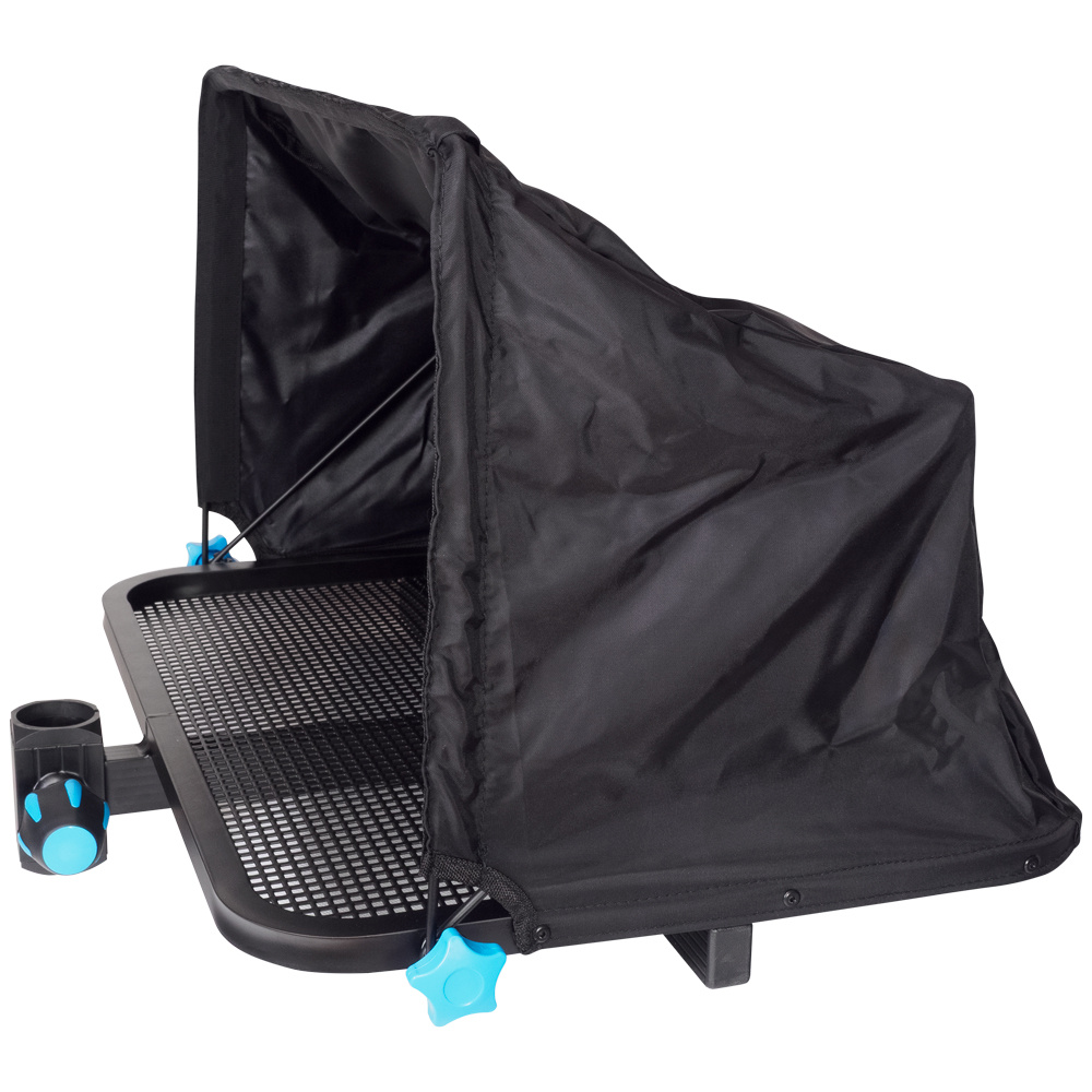 Aluminiowa platforma boczna z osłoną. Pasuje do wszystkich koszy wędkarskich na nogi: Ø 25/30/36 mm. Wymiary platformy 50x40 cm.